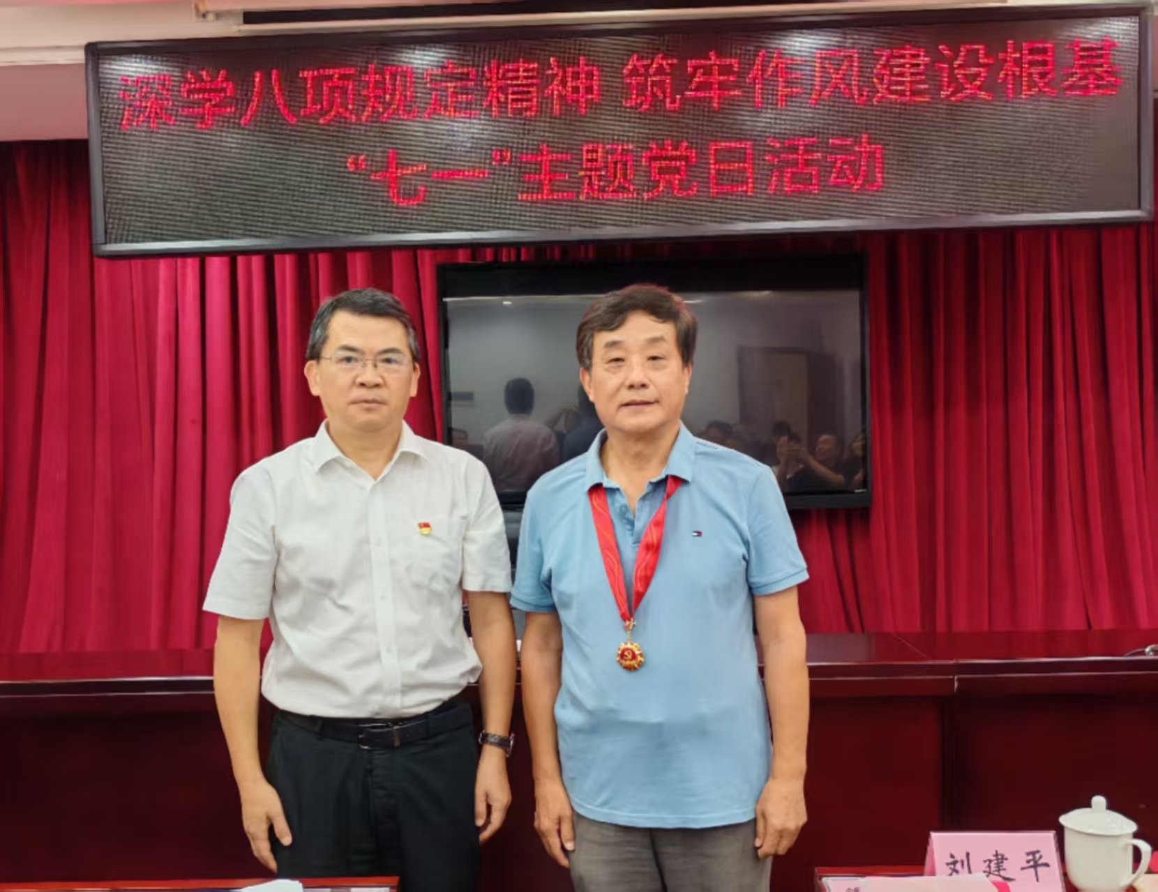 会上,全体党员重温了入党誓词,通过集中颁发、上门授章等形式,向党龄满50年的老党员刘建平、陈峰、何梓林等三名同志颁发了“光荣在党50年”纪念章,刘建平作了“不忘初心 不怨不悔”的发言。