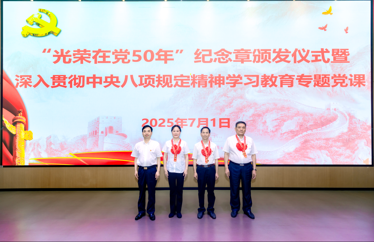 7月1日,省市场监管局举行“光荣在党50年”纪念章颁发仪式暨深入贯彻中央八项规定精神学习教育专题党课,省局党组书记、局长钱俊君带领全体党员重温入党誓词,为退休老党员代表颁发“光荣在党50年”纪念章,并讲授深入贯彻中央八项规定精神学习教育专题党课。省局党组副书记、副局长冯海燕主持。