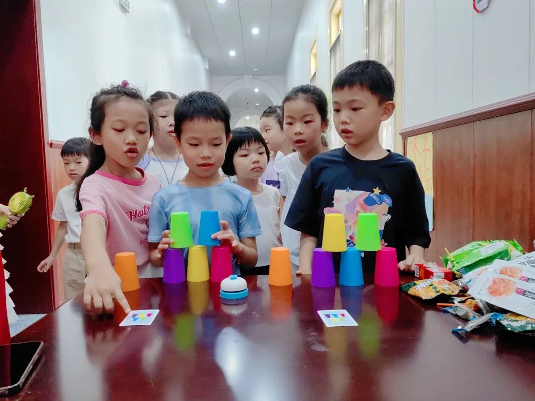 “挑战开始!”在暑假托管班的开班游园会中,托管老师正带着孩子们玩杯子叠叠乐游戏,如何用最短的时间按照图案摆好纸杯成为孩子们争相讨论的话题。开班当天,托管班热闹而温馨。孩子们在老师的带领下,熟悉了托管班的环境,了解托管班的日常安排与注意事项,通过有趣的互动游戏,让孩子们迅速融入集体,结交了新朋友。