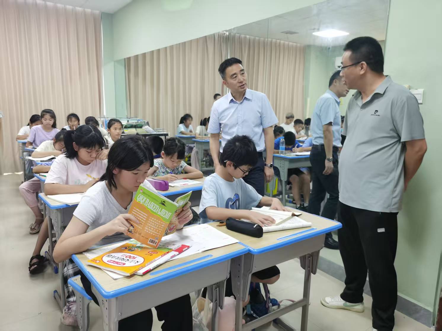 用心观摩上课情况。刘志刚同志走进暑期托管示范班教室,实地观摩了正在进行的手工制作、绘画美术、国学诵读、作业辅导等课堂,认真观察孩子们的学习状态、参与热情以及师生互动情况。详细询问了课程设置、师资配备、教学资源保障以及特色活动的开展情况。他强调,暑期托管不仅是看护服务,更是促进学生全面发展、丰富假期生活的重要平台。要精心设计寓教于乐的课程活动,激发孩子们的兴趣和潜能,让孩子们在托管班学有所获、玩有所乐、安全充实。
