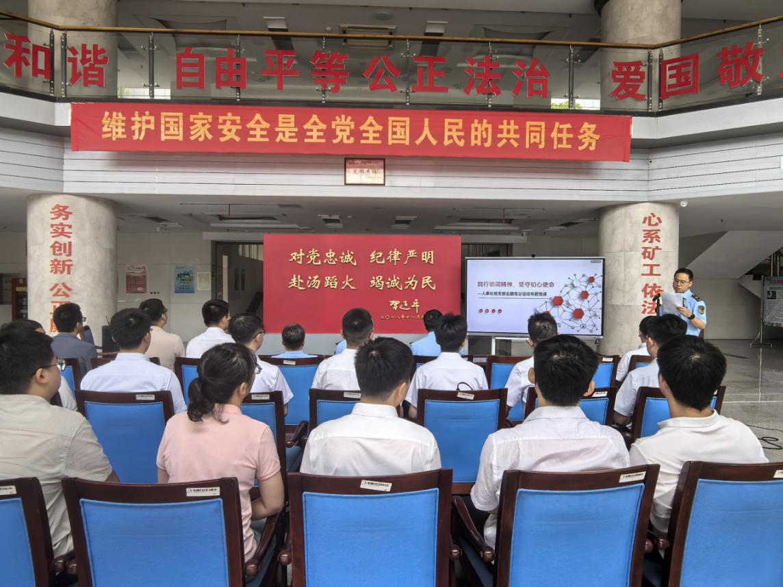 7月22日,国家矿山安全监察局湖南局人事处党支部在局机关“对党忠诚、纪律严明、赴汤蹈火、竭诚为民”训词牌前,开展“践行训词精神坚守初心使命”主题党日活动,并为2025年度新招录公务员上入职“第一课”,推动党建与干部人事业务深度融合。