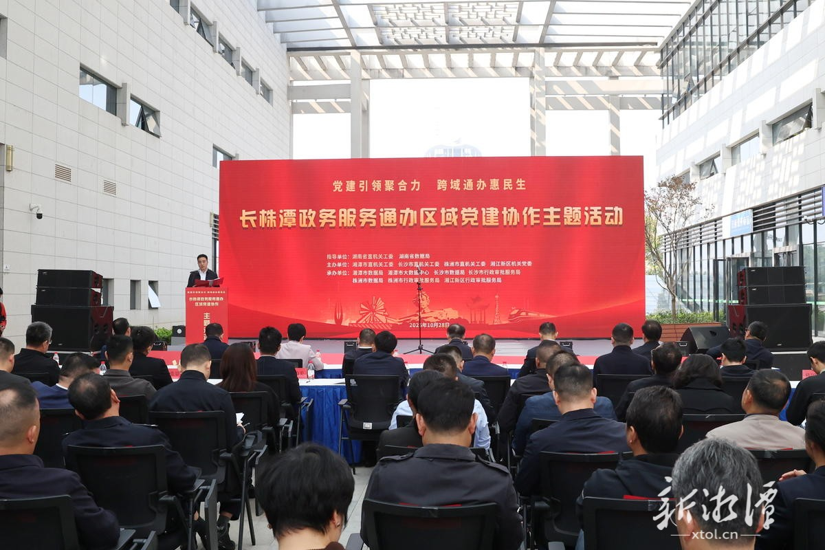 10月28日,“党建引领聚合力,跨域通办惠民生”长株潭政务服务通办区域党建协作主题活动在湘潭市市民之家举行。活动由省直机关工委、省数据局指导,湘潭市直机关工委和市数据局承办。省直机关工委分管日常工作的副书记汤立斌,省数据局党组书记、局长彭涛,湘潭市委常委、市委组织部部长刘俊,副市长伍浩出席。