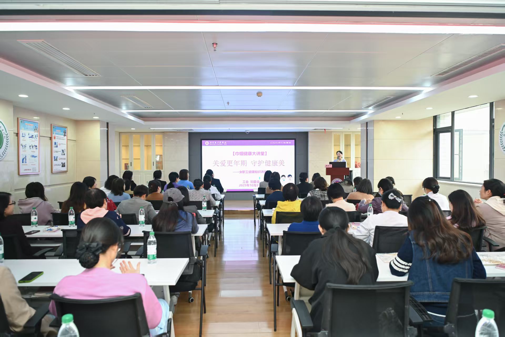 在全球妇女峰会聚焦女性全生命周期健康的热烈氛围中,为深入贯彻习近平总书记关于“保障妇女权益、促进妇女成长发展”的重要指示精神,省人民医院工会、妇委会联合妇科、临床营养科、临床心理科,共同打造了一场“巾帼健康大讲堂”活动。10月31日上午,以“关爱更年期・守护健康美”为主题的女职工健康知识讲座在天心阁院区温情开讲,为全院70多名年龄在 40-55 岁的女职工送上专属健康守护。