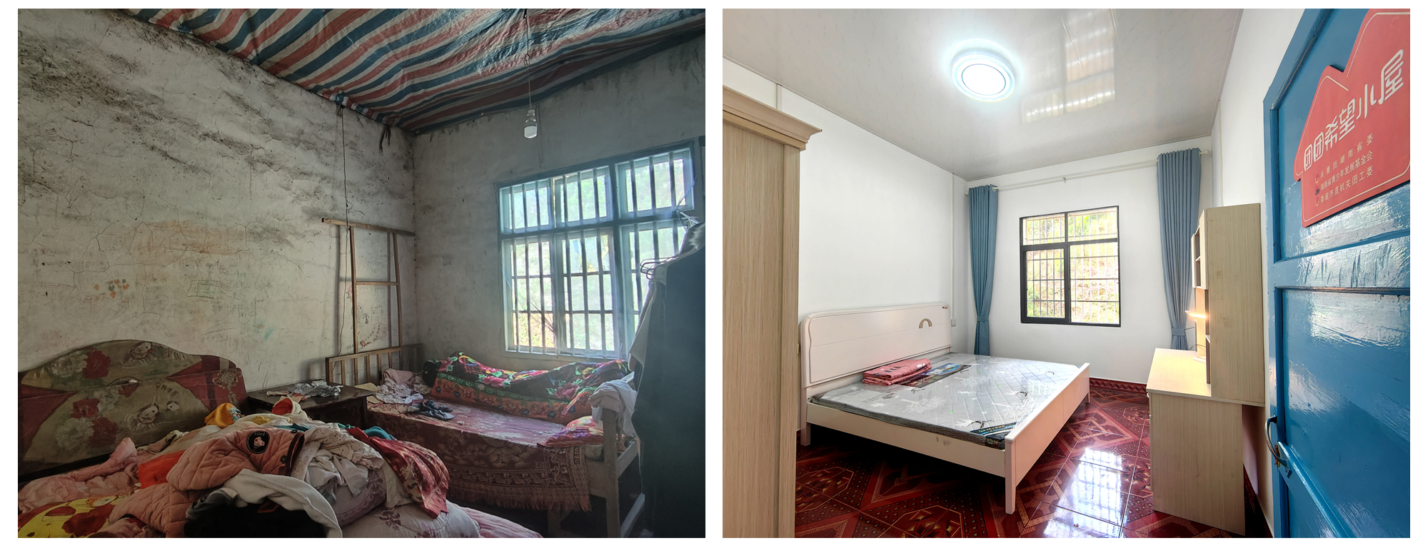 工作组实地查看了3户改造后的“团团希望小屋”。原本昏暗杂乱的房间,经改造后焕然一新,洁白的墙面、明亮的窗户、高低合适的桌椅、温馨舒适的床铺,孩子们的学习生活环境明显改善。
