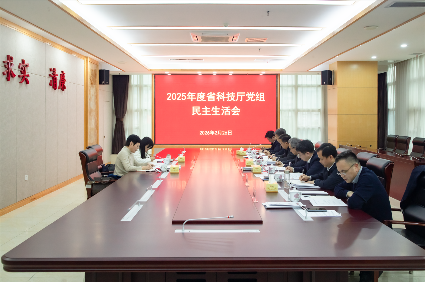 2月26日,省科技厅党组召开2025年度民主生活会。会议由厅党组书记李志坚主持,厅党组班子成员参加会议,省委督导组有关同志到会指导。驻厅纪检监察组、办公室、人事处、机关党委负责同志列席会议。