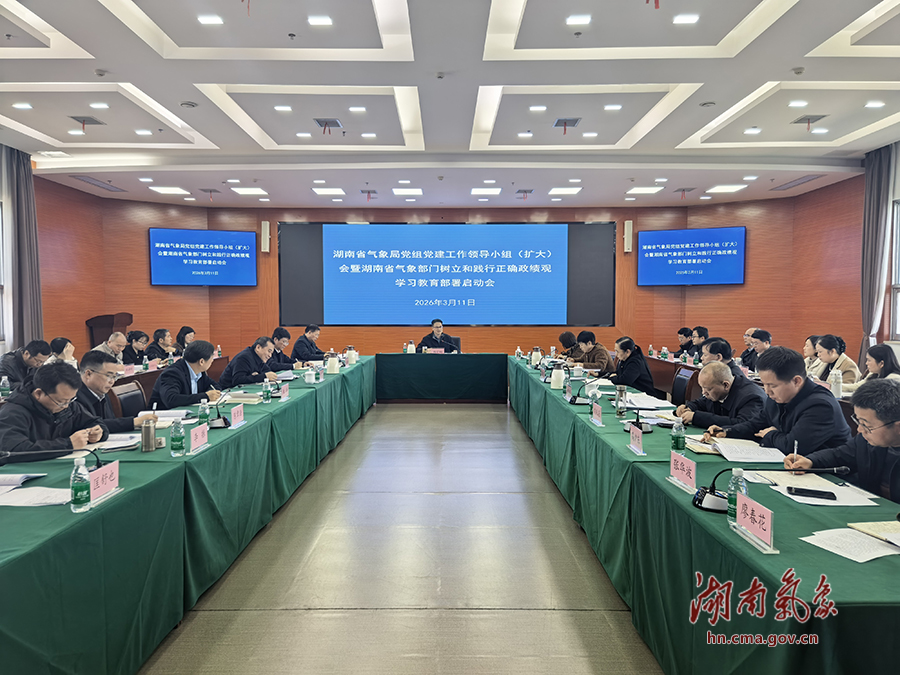 3月11日,省气象局召开党组党建工作领导小组(扩大)会议,深入学习贯彻习近平总书记关于树立和践行正确政绩观的重要讲话和重要指示精神,学习传达中央党的建设工作领导小组会议精神以及湖南省委、中国气象局党组的有关部署,审议通过了《湖南省气象部门开展树立和践行正确政绩观学习教育实施方案》《湖南省气象局党组关于成立开展树立和践行正确政绩观学习教育工作专班的通知》,并对全省气象部门开展树立和践行正确政绩观学习教育(以下简称“学习教育”)进行全面动员部署。省气象局党组书记、局长郑宏翔出席会议并讲话。