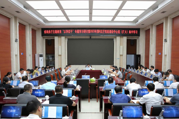 8月15日,省商务厅举行主题教育“以学促干”专题学习研讨暨2023年第8次厅党组理论学习中心组(扩大)集中学习会议。厅党组书记、厅长沈裕谋主持。