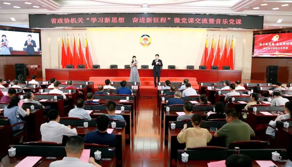 6月25日下午,省政协机关开展“学习新思想 奋进新征程”微党课交流暨音乐党课活动。省政协领导黄兰香、肖百灵、张大方、邓群策出席活动。