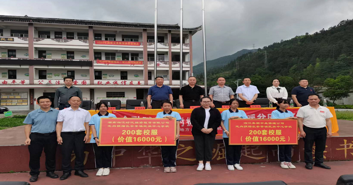 25日,调研组一行来到长安营镇民族中心学校举行爱心捐赠仪式,湖南湘江时代融资租赁有限公司和湖南中盈梦想商业保理有限公司两家爱心企业共向长安营镇民族中心学校捐赠400套校服。